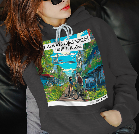 We chose the production partner with the most advanced sustainability features. Products are made and printed local to the customer (reducing shipping miles. Wood and paper is FSC certified. Hoodies and T-shirts are made from organic cotton. Packaging is made from recycled paper. See more environmental features and reports here.