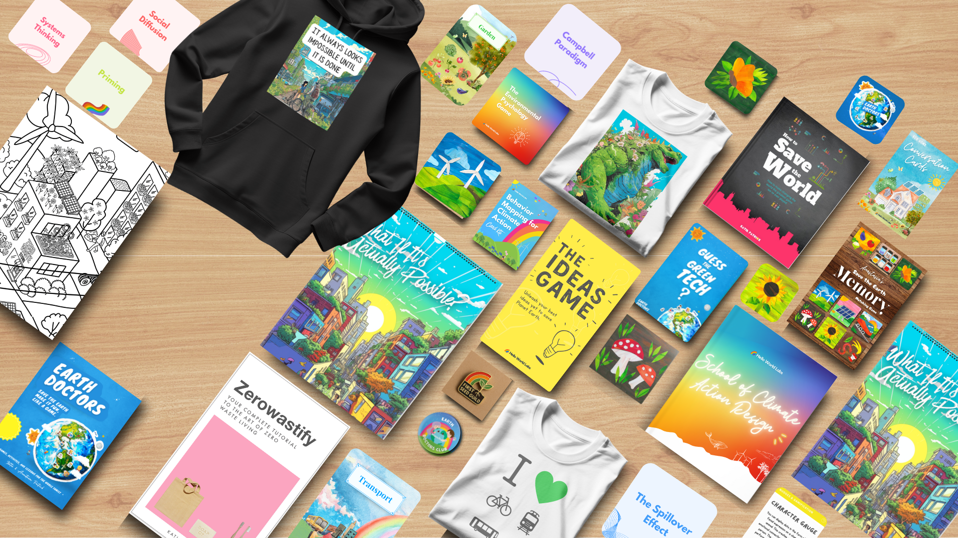We chose the production partner with the most advanced sustainability features. Products are made and printed local to the customer (reducing shipping miles. Wood and paper is FSC certified. Hoodies and T-shirts are made from organic cotton. Packaging is made from recycled paper. See more environmental features and reports here.