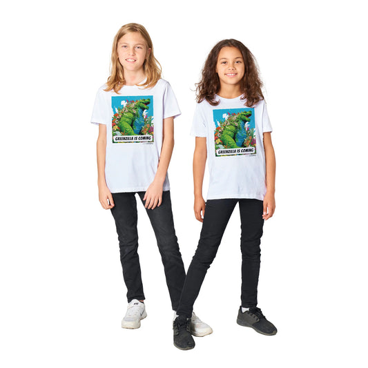Greenzilla is Coming • Organic Kids Crewneck T-shirt