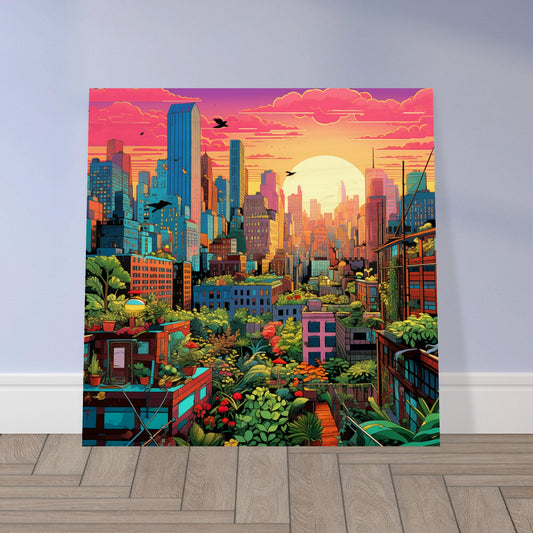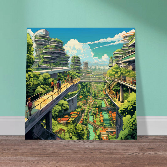 Solarpunk Sunrise Wood Print