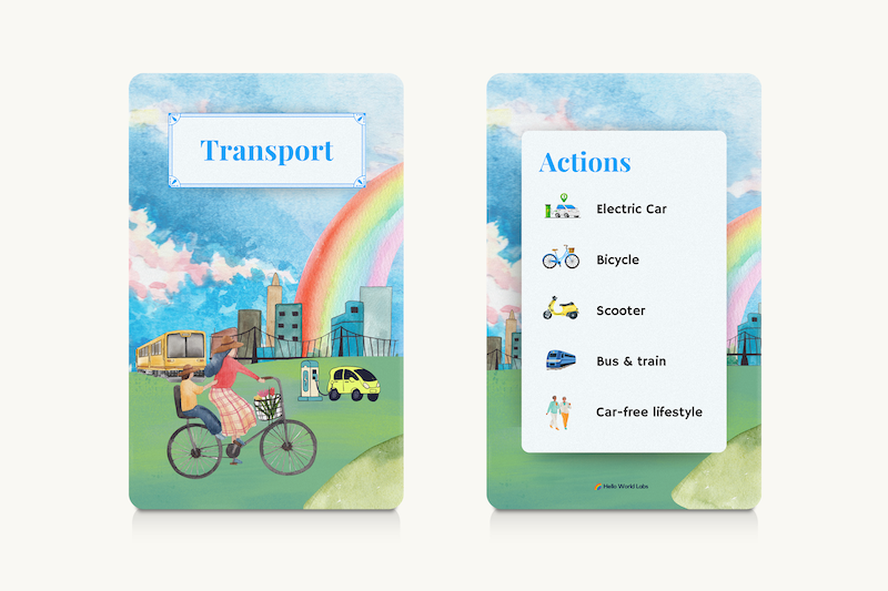 Residents choose a theme that interests them, flip the card, and select from 3 to 5 sustainability actions to take. This method empowers residents to feel in control of their choices.